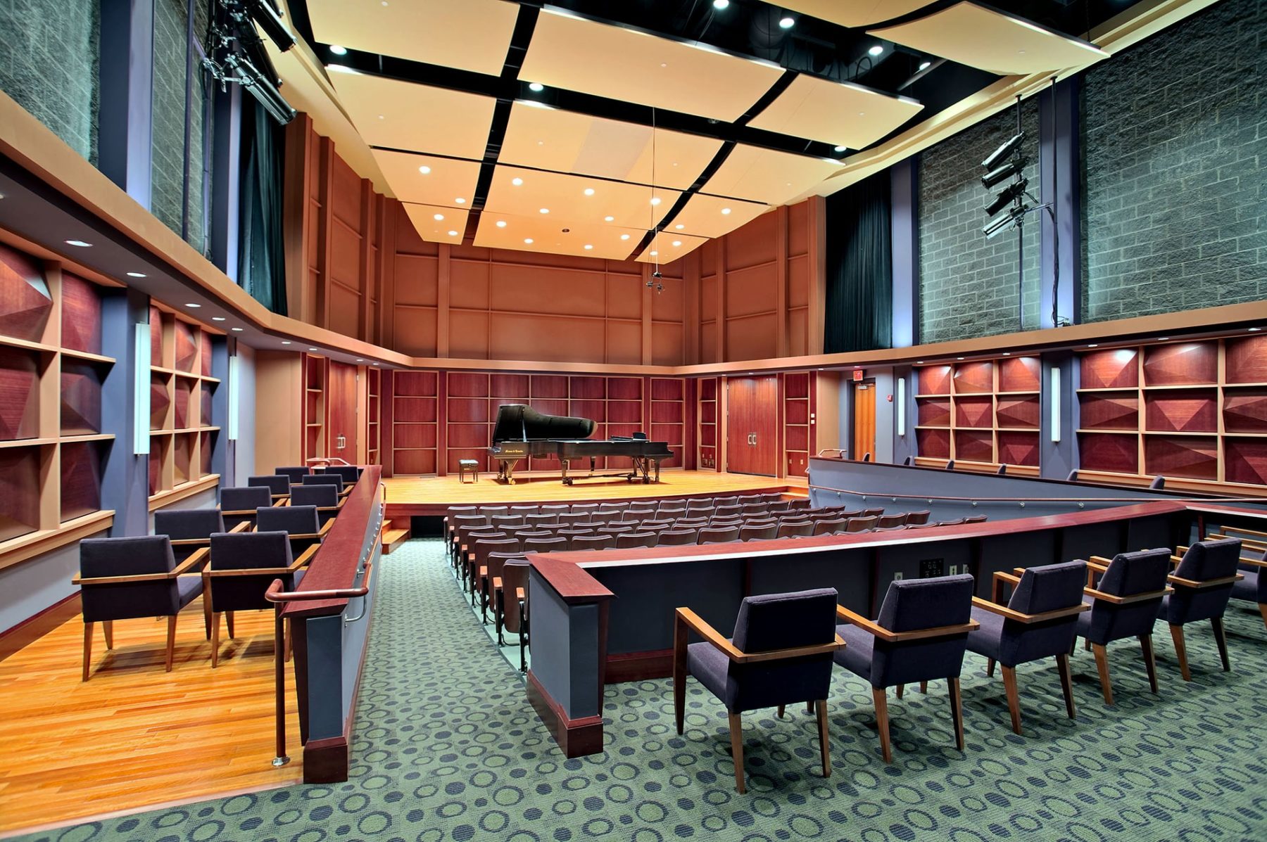 Hailed by Frank Bruni in The New York Times as a “stunning music hall with sumptuous acoustics” and by Tim Smith in The Baltimore Sun as “architecturally and acoustically inviting,” the beautiful Earl and Darielle Linehan Concert Hall seats 375 people and is the site of both professional and student performances produced by UMBC Department of Music, as well as distinguished lectures and other events. Linehan Concert Hall is equipped with a 9-foot Steinway grand concert piano and cutting edge recording and performance technologies.